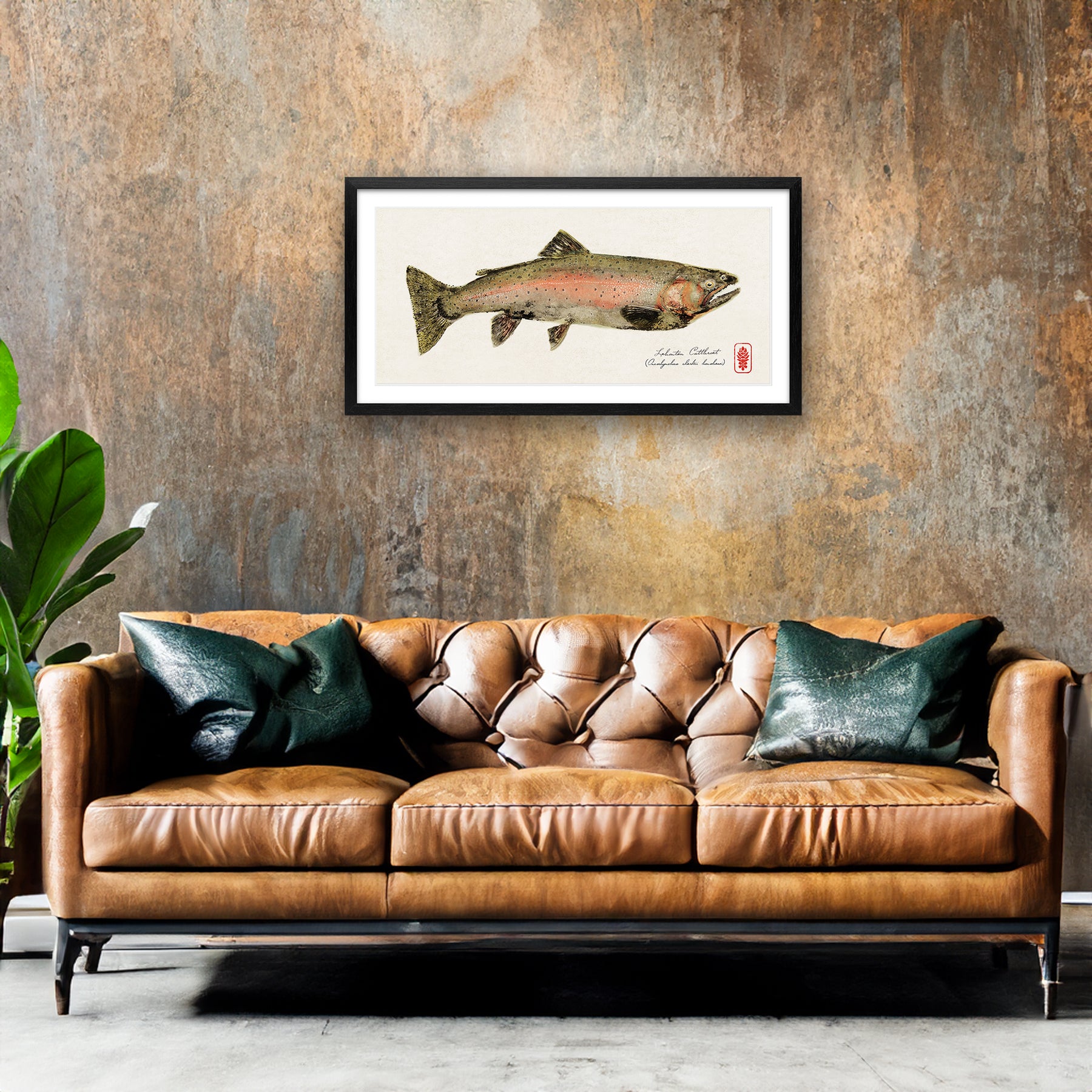 From the healing alkaline waters of Lake Lenore in Washington state, the stunning yet subtle color palette on this Lahontan Cutthroat brightens any kitchen or hearth.