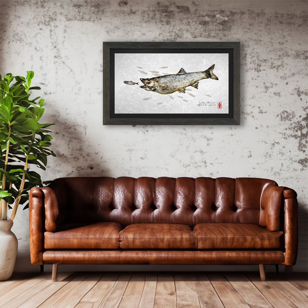 Originally printed using Sumi ink and watercolor on mulberry fibre washi, the giclée reproduction uses archival, acid-free ink.