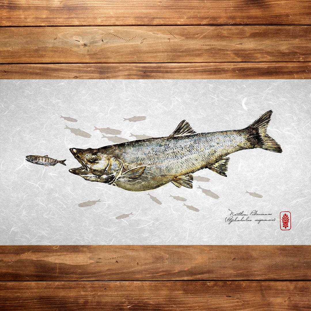 Formerly called Squawfish, these voracious minnow have bounties on their heads in many PNW states for their salmon and trout appetites. Here, the predator scatters prey to chase down a fledgling steelhead.